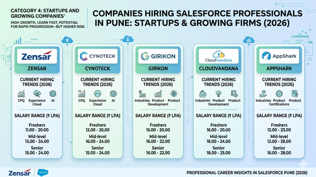 | System Integrators | Zensar Technologies, Synechron, Hexaware | LWC Developers, CPQ Specialists |
