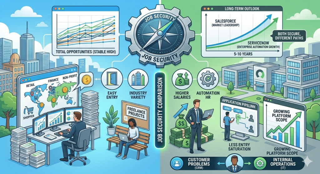 Whether you’re asking which is better Salesforce or ServiceNow, comparing Salesforce vs ServiceNow salary, or analyzing the SF vs SNOW job market—you now have the framework to decide.