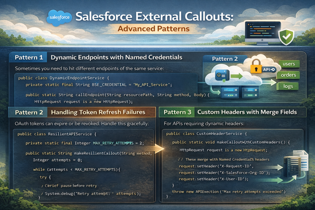 This guide cuts through the documentation noise and shows you exactly how to implement Salesforce Named Credentials for secure external callouts. We’ll cover the architecture, the confusing distinction between Named Credentials and External Credentials, real implementation patterns, and the security pitfalls that can land you in a compliance audit.